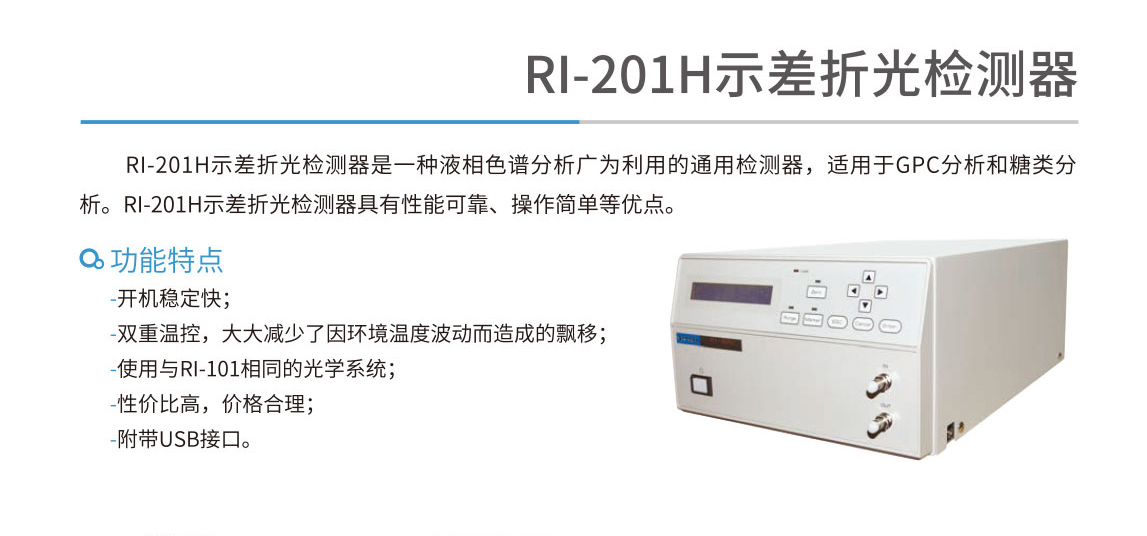 RI-201H示差折光檢測器是一種液相色譜分析廣為利用的通用檢測器,適用於GPC分析和糖類分析。RI-201H示差折光檢測器具有性能可靠、操作簡單等優點。